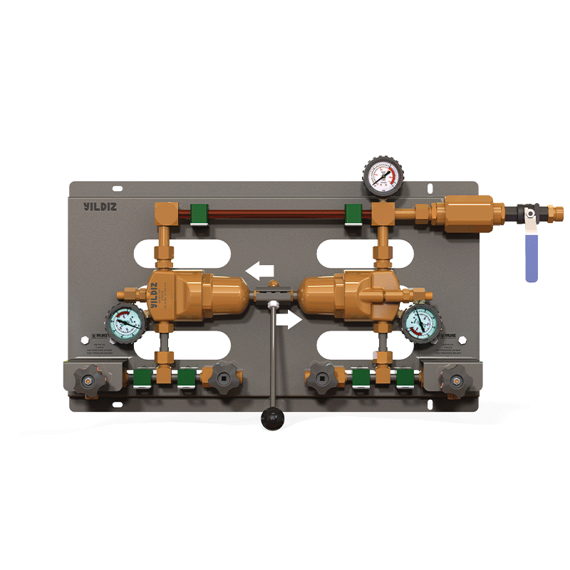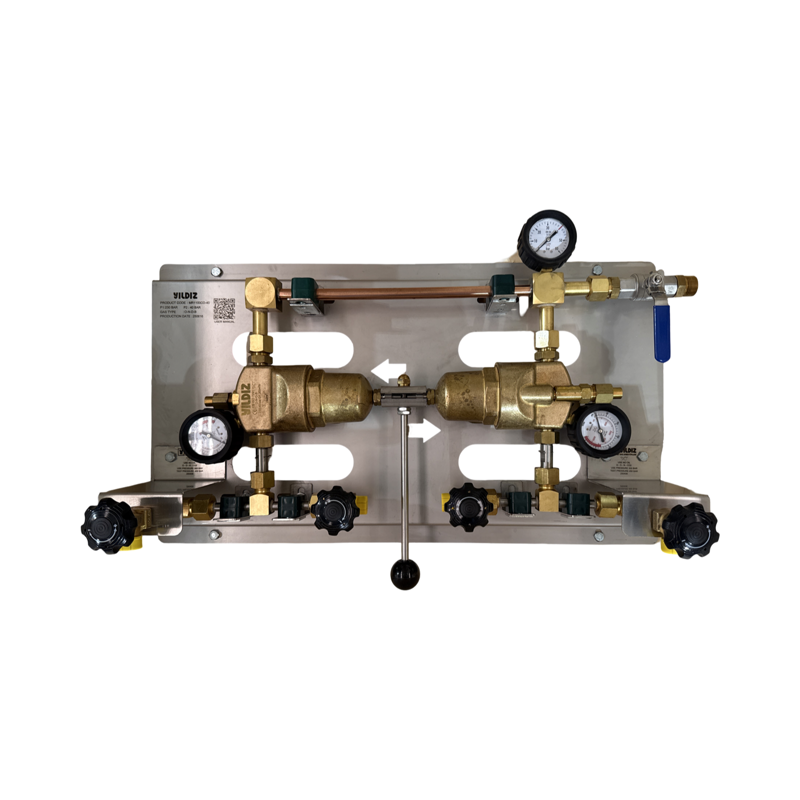 - While one side of the system is operating, the other side remains on standby. When the cylinder or bundle is emptied, the gas flow automatically switches to the other side, ensuring uninterrupted operation.
